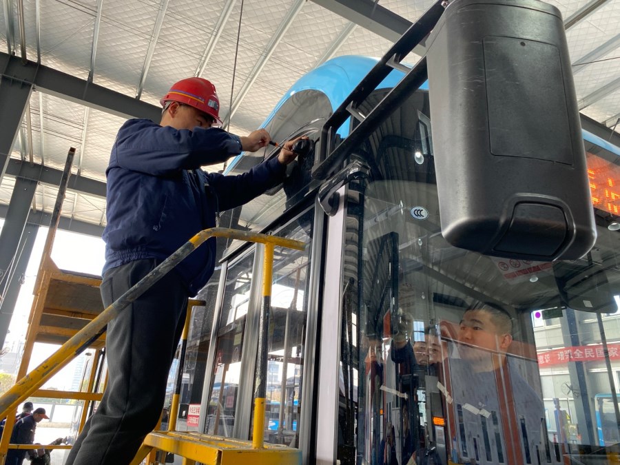 在新車投入使用過(guò)程中,發(fā)現(xiàn)新車的電子后視鏡廠家交付時(shí)均未調(diào)試到位,照射范圍均不是行車可視范圍,在車內(nèi)顯示屏根本看不見周圍的環(huán)境,行車過(guò)程中容易造成事故及安全隱患。通過(guò)與廠家的溝通,保修分公司組織車間維修電工進(jìn)行電子后視鏡調(diào)試的培訓(xùn)學(xué)習(xí),掌握技術(shù)后,承接電子后視鏡調(diào)試的售后服務(wù)工作。由于新車已經(jīng)上路運(yùn)行,分布的場(chǎng)站較為分散,距離較遠(yuǎn),有的站點(diǎn)遠(yuǎn)至六合,路上單程就要花費(fèi)1小時(shí),維修人員早出發(fā),晚收工,克服困難,自行攜帶維修工具、高空作業(yè)防護(hù)用品和折疊高架梯,駕車赴新車場(chǎng)站進(jìn)行支援。在調(diào)節(jié)時(shí)他們互相配合,一人調(diào)試,一人看顯示屏指引,最后一起校驗(yàn),在最短的時(shí)間內(nèi),有效地完成百輛新車的后視鏡調(diào)試工作,提高駕駛員行車安全系數(shù),保障外勤運(yùn)營(yíng)地順利進(jìn)行。目前已完成348臺(tái)車,剩余車輛預(yù)計(jì)本周調(diào)試完成。