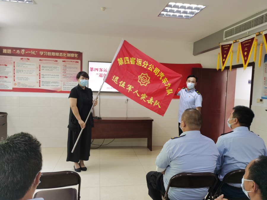 大會上,第四客運分公司黨委書記、經(jīng)理李燕川宣布“退伍軍人突擊隊”成立,并向“退伍軍人突擊隊”授旗。