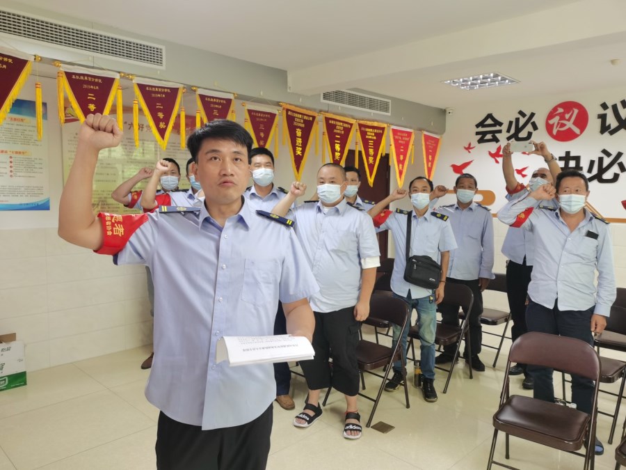 隊員們面向隊旗,莊嚴(yán)宣誓:繼續(xù)發(fā)揚“艱苦奮斗、崇尚實干、團(tuán)結(jié)奉獻(xiàn)、爭創(chuàng)一流”的精神。用扎實的工作,勤懇的勞動,締造出無愧于青春、無愧于“退伍軍人”這個光榮稱號的業(yè)績!隊員代表傅曉剛作表態(tài)發(fā)言。