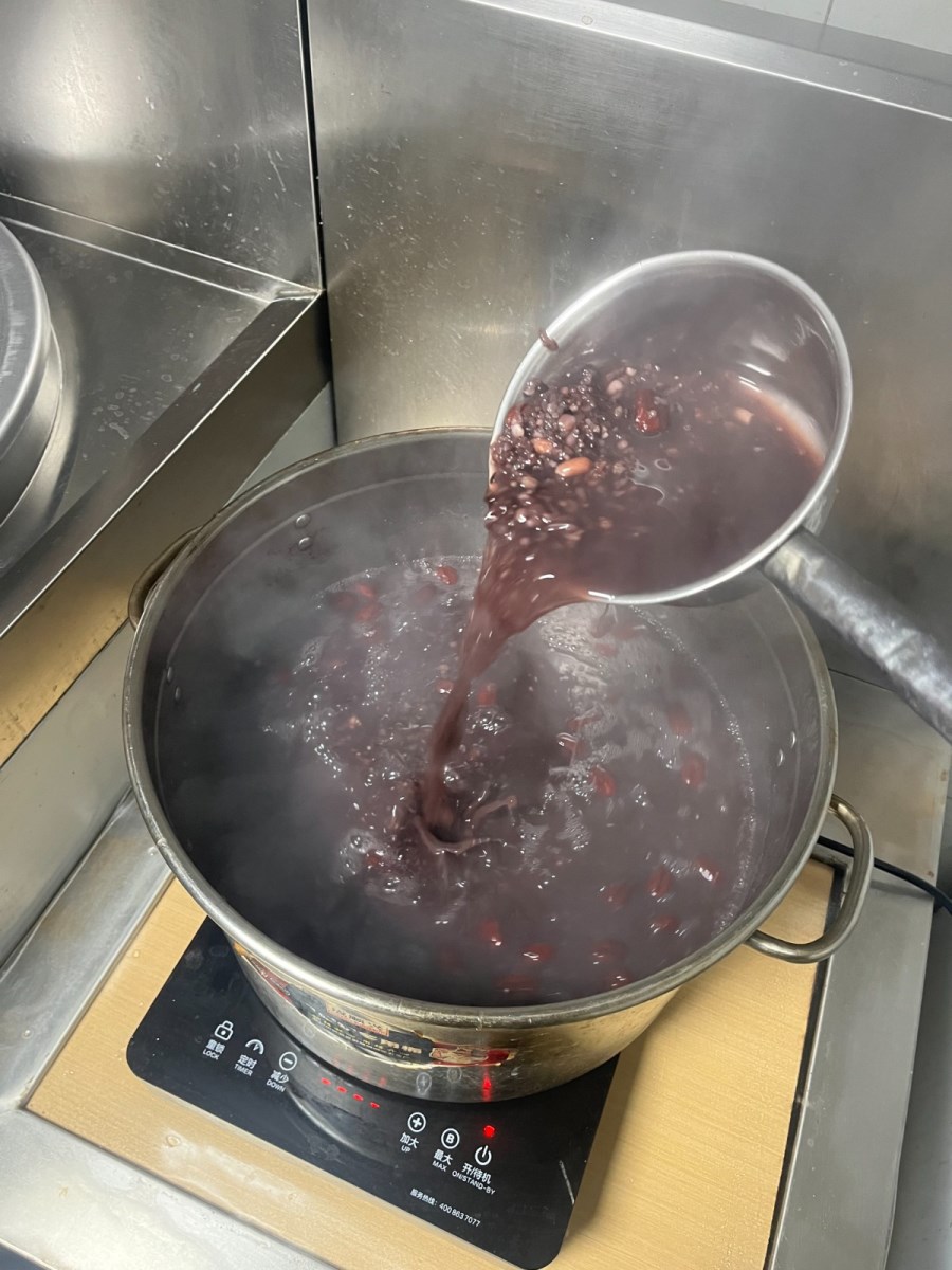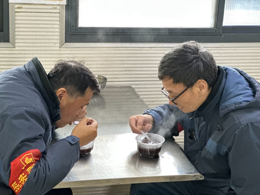 清早車隊(duì)工作人員便已在食堂忙碌開來。泡好的糯米、紅豆、紅棗、薏米等食材在大鍋里翻滾,經(jīng)過2小時慢熬,香甜軟糯的臘八粥新鮮出鍋,色澤鮮艷,口感豐富,既有糯米的軟糯,又有豆類的香甜,還有蓮子的清新和桂圓的甜蜜,待裝碗后一一遞到職工手里。