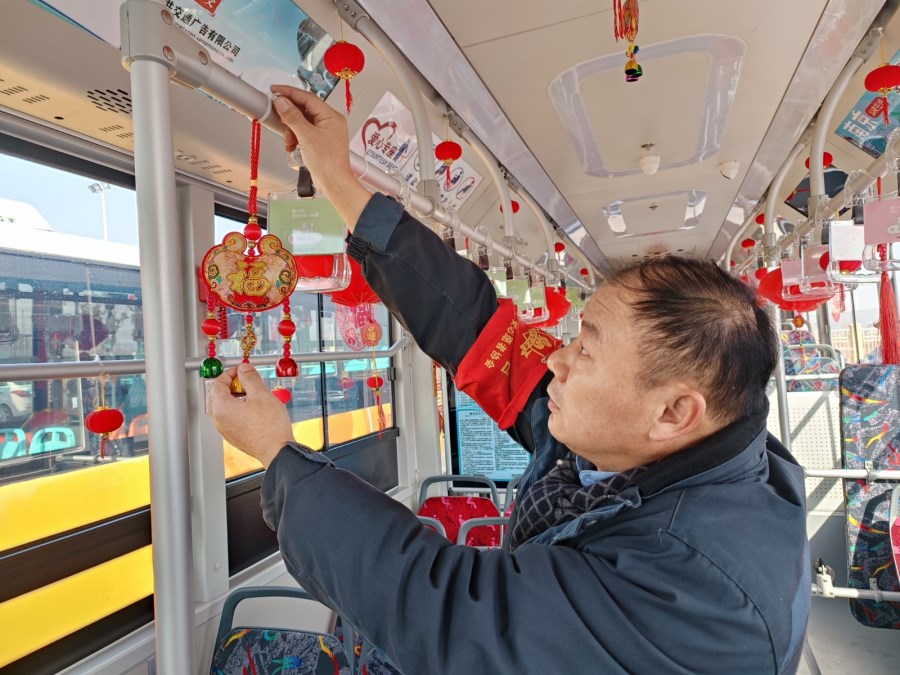 公交黨員示范車裝扮年味公交迎春節(jié)