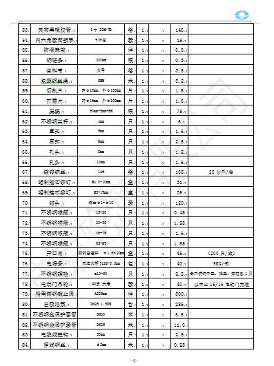 6. 供應商報價時如對清單中規(guī)格型號有疑問,請及時與南京輪渡有限公司聯(lián)系人聯(lián)系,具體以輪渡公司倉庫實際材料為準。